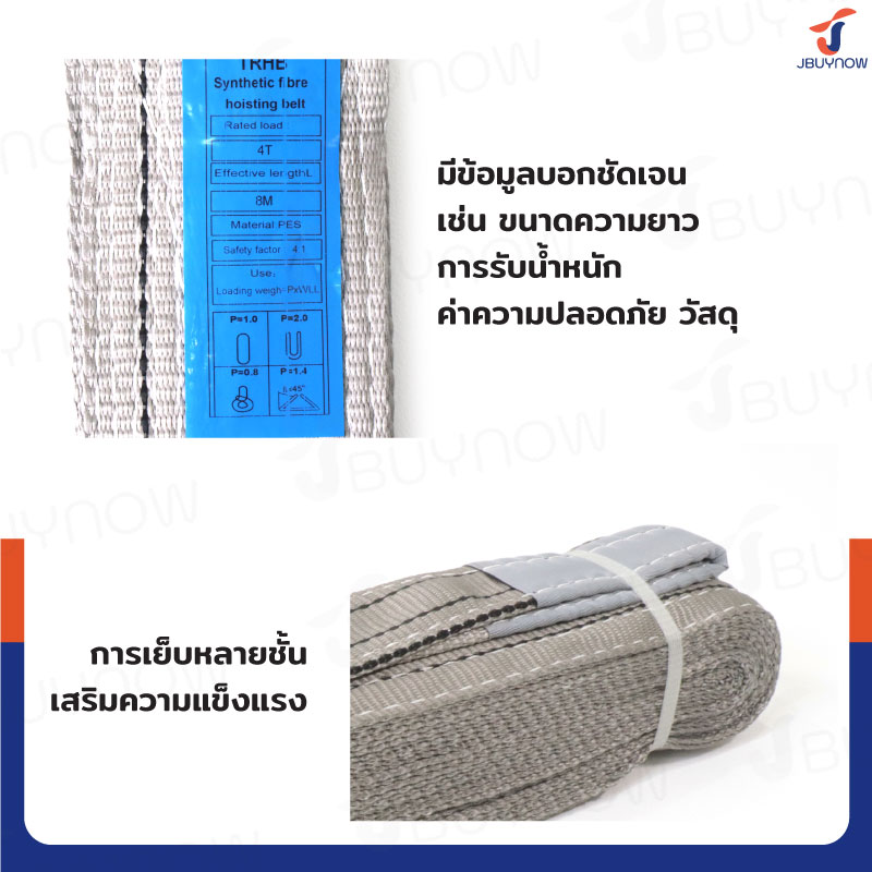 สลิงผ้าใบแบน สายพานยกของ (เซฟตี้ 4:1 มีใบเซอร์) 4 ตัน ยาว 8 เมตร JBUYNOW 4TX8M