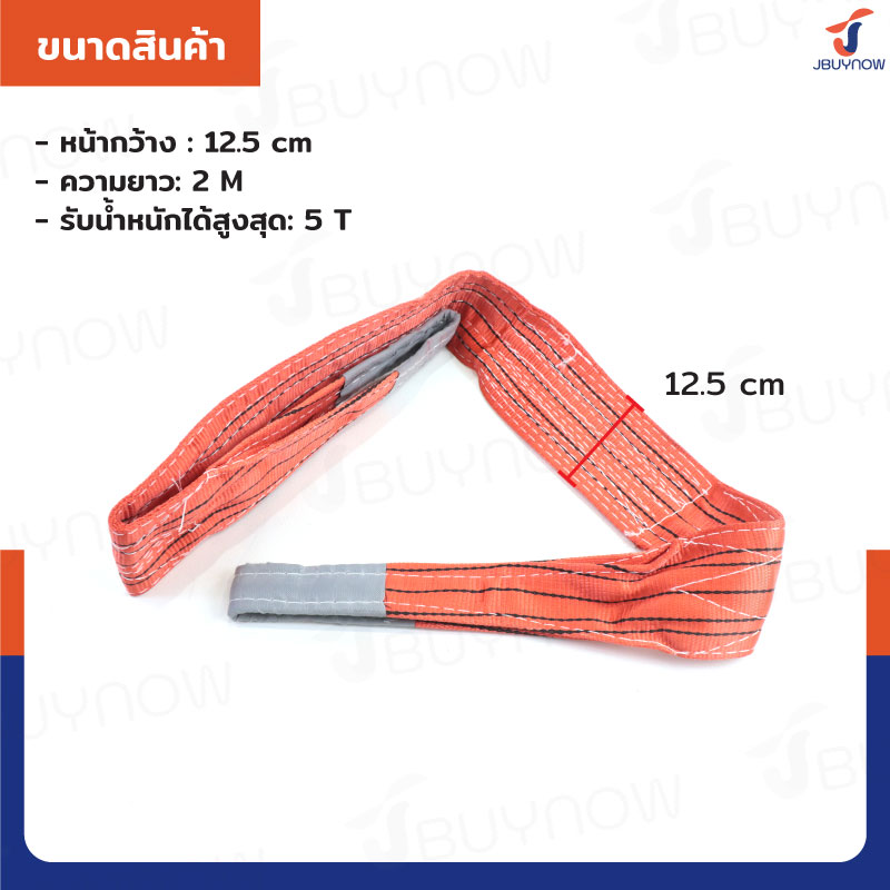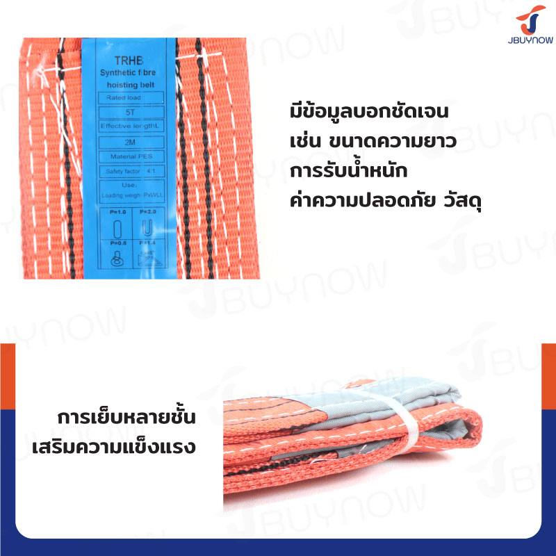 สลิงผ้าใบแบน สายพานยกของ (เซฟตี้ 4:1 มีใบเซอร์) 5 ตัน ยาว 2 เมตร JBUYNOW 5TX2M
