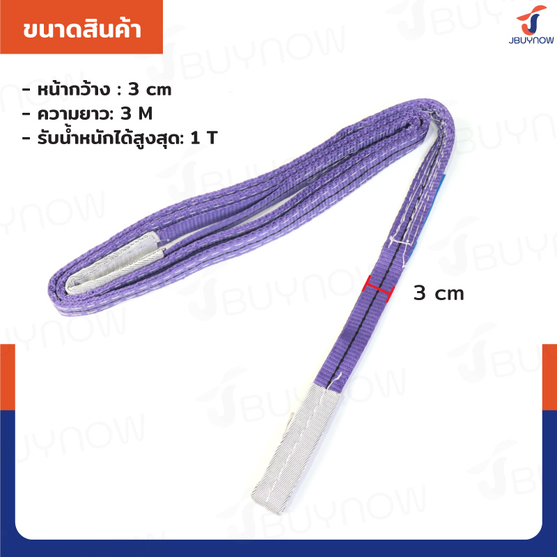 Lifting straps สลิงผ้าใบแบน สายพานยกของ 1 ตัน ยาว 3 เมตร (เซฟตี้ 6:1) JBUYNOW 1TX3M(A)