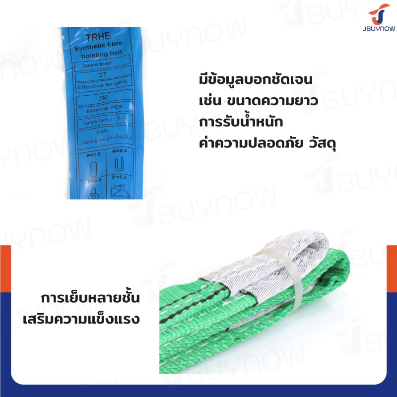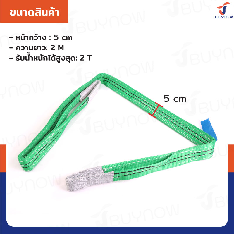 สลิงผ้าใบแบน สายพานยกของ (เซฟตี้ 6:1 มีใบเซอร์) 2 ตัน ยาว 5 เมตร JBUYNOW 2TX5M(A)
