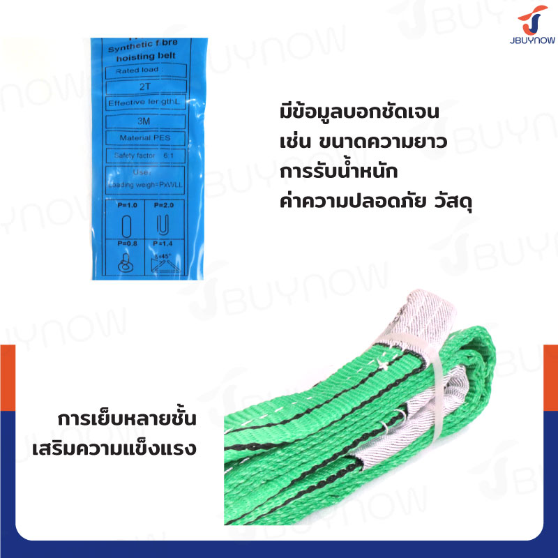 Lifting straps สลิงผ้าใบแบน สายพานยกของ 2 ตัน ยาว 3 เมตร (เซฟตี้ 6:1) JBUYNOW 2TX3M(A)
