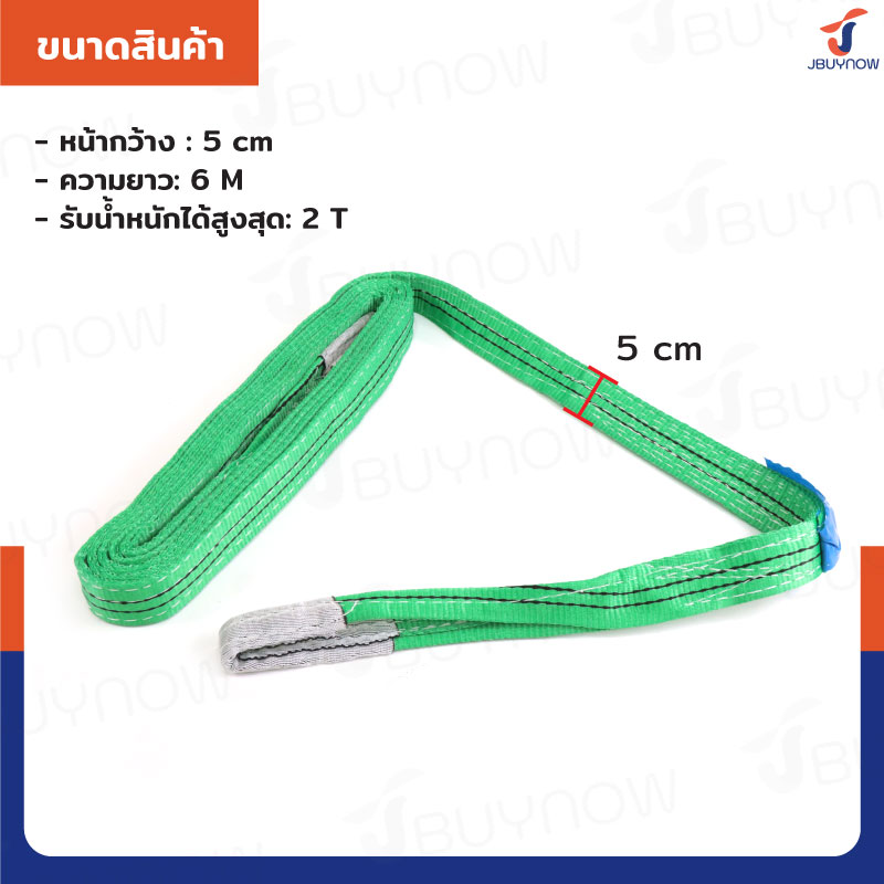 สลิงผ้าใบแบน สายพานยกของ (เซฟตี้ 6:1 มีใบเซอร์) 2 ตัน ยาว 5 เมตร JBUYNOW 2TX5M(A)