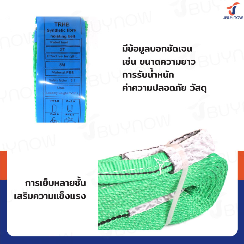 Lifting straps สลิงผ้าใบแบน สายพานยกของ 2 ตัน ยาว 8 เมตร (เซฟตี้ 6:1) JBUYNOW 2TX8M(A)