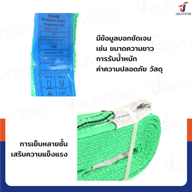 Lifting straps สลิงผ้าใบแบน สายพานยกของ 2 ตัน ยาว 10 เมตร (เซฟตี้ 6:1) JBUYNOW 2TX10M(A)