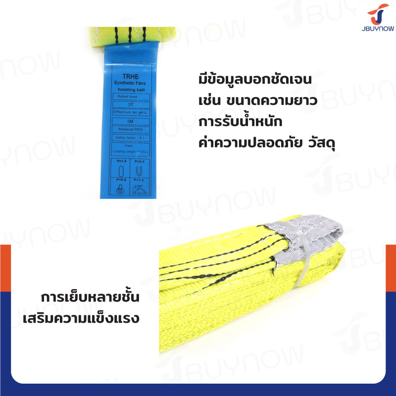 Lifting straps สลิงผ้าใบแบน สายพานยกของ 3 ตัน ยาว 5 เมตร (เซฟตี้ 6:1) JBUYNOW 3TX5M(A)