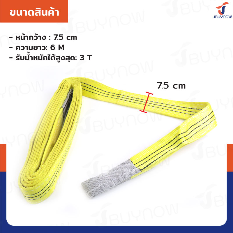 สลิงผ้าใบแบน สายพานยกของ (เซฟตี้ 6:1 มีใบเซอร์) 3 ตัน ยาว 6 เมตร JBUYNOW 3TX6M(A)