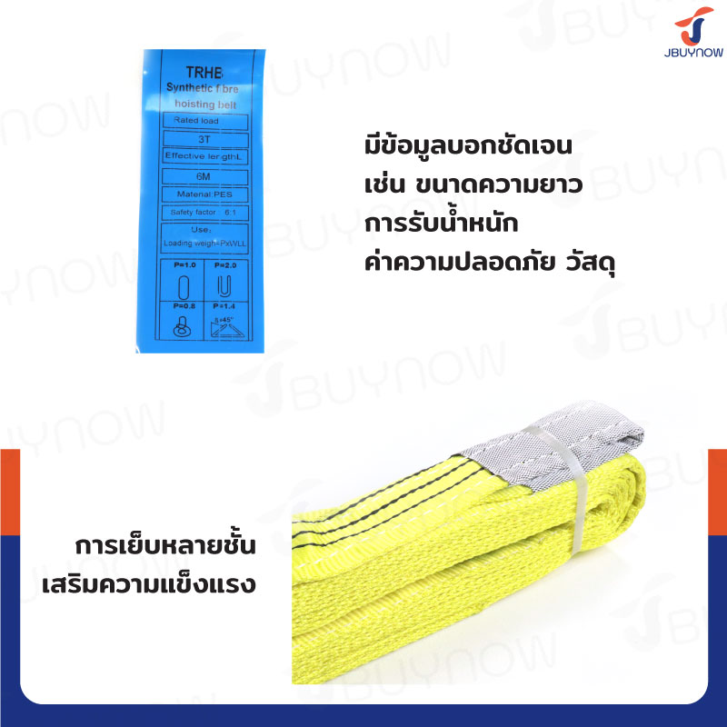 สลิงผ้าใบแบน สายพานยกของ (เซฟตี้ 6:1 มีใบเซอร์) 3 ตัน ยาว 5 เมตร JBUYNOW 3TX5M(A)