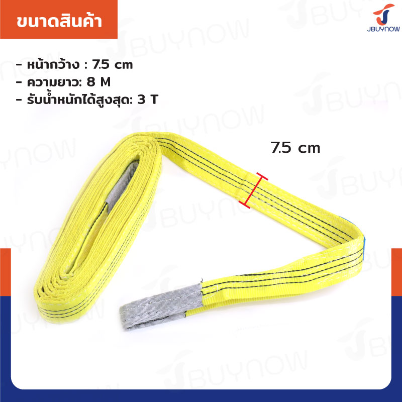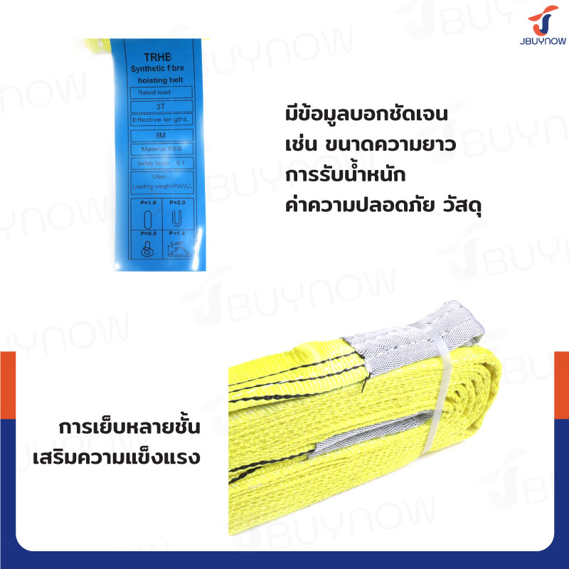 สลิงผ้าใบแบน สายพานยกของ (เซฟตี้ 6:1 มีใบเซอร์) 3 ตัน ยาว 8 เมตร JBUYNOW 3TX8M(A)