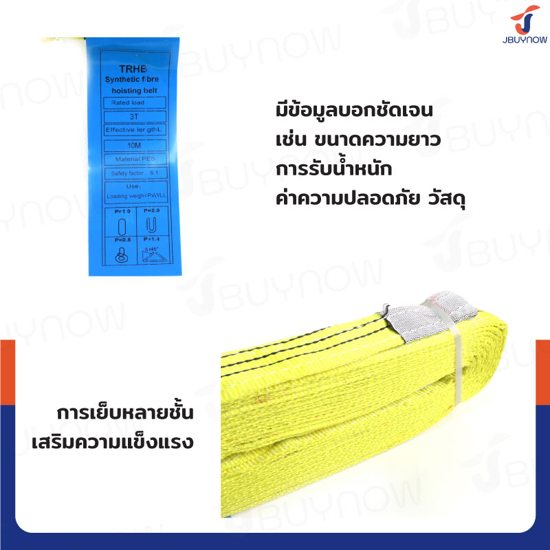 Lifting straps สลิงผ้าใบแบน สายพานยกของ 3 ตัน ยาว 10 เมตร (เซฟตี้ 6:1) JBUYNOW 3TX10M(A)