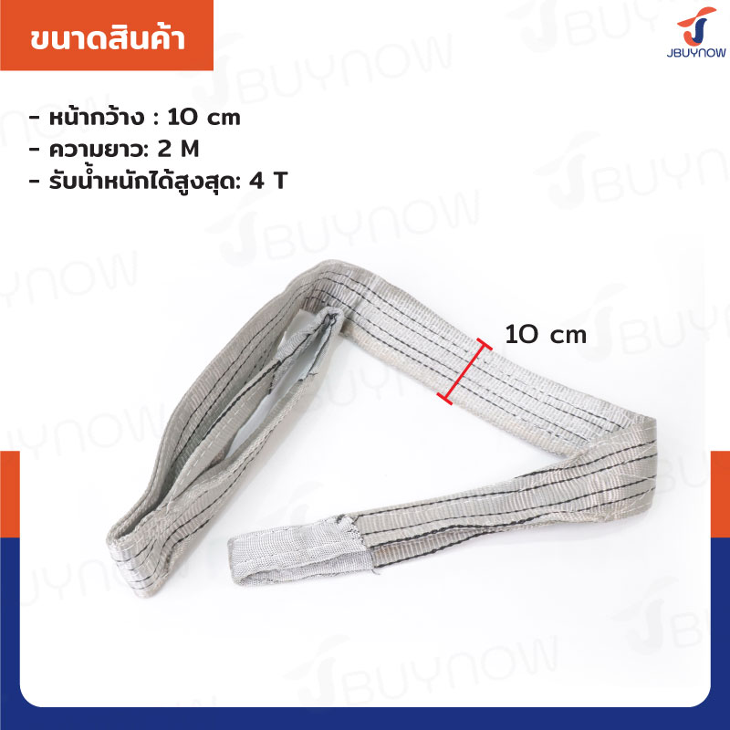 สลิงผ้าใบแบน สายพานยกของ (เซฟตี้ 6:1 มีใบเซอร์) 4 ตัน ยาว 10 เมตร JBUYNOW 4TX10M(A)