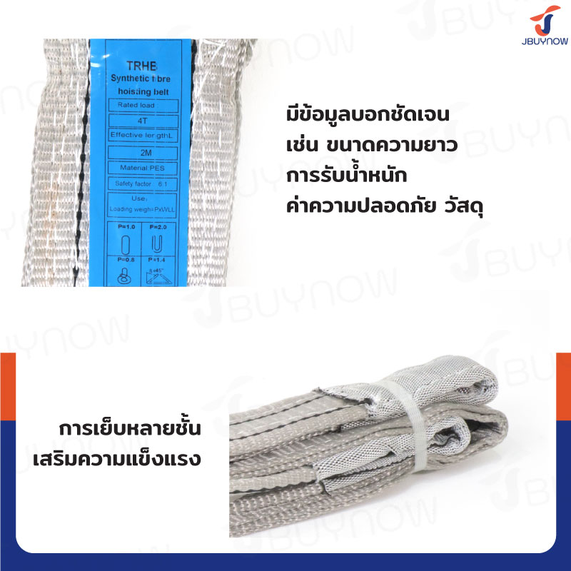 สลิงผ้าใบแบน สายพานยกของ (เซฟตี้ 6:1 มีใบเซอร์) 4 ตัน ยาว 3 เมตร JBUYNOW 4TX3M(A)