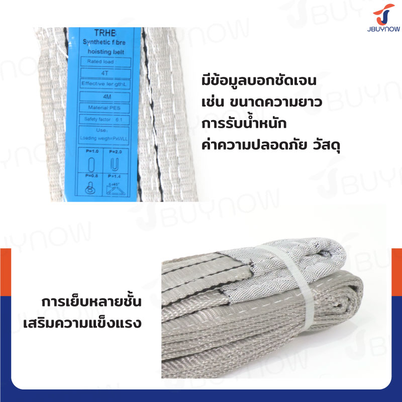 Lifting straps สลิงผ้าใบแบน สายพานยกของ 4 ตัน ยาว 4 เมตร (เซฟตี้ 6:1) JBUYNOW 4TX4M(A)