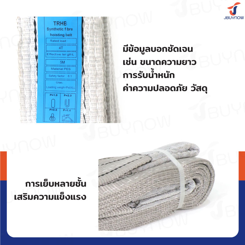 Lifting straps สลิงผ้าใบแบน สายพานยกของ 4 ตัน ยาว 5 เมตร (เซฟตี้ 6:1) JBUYNOW 4TX5M(A)