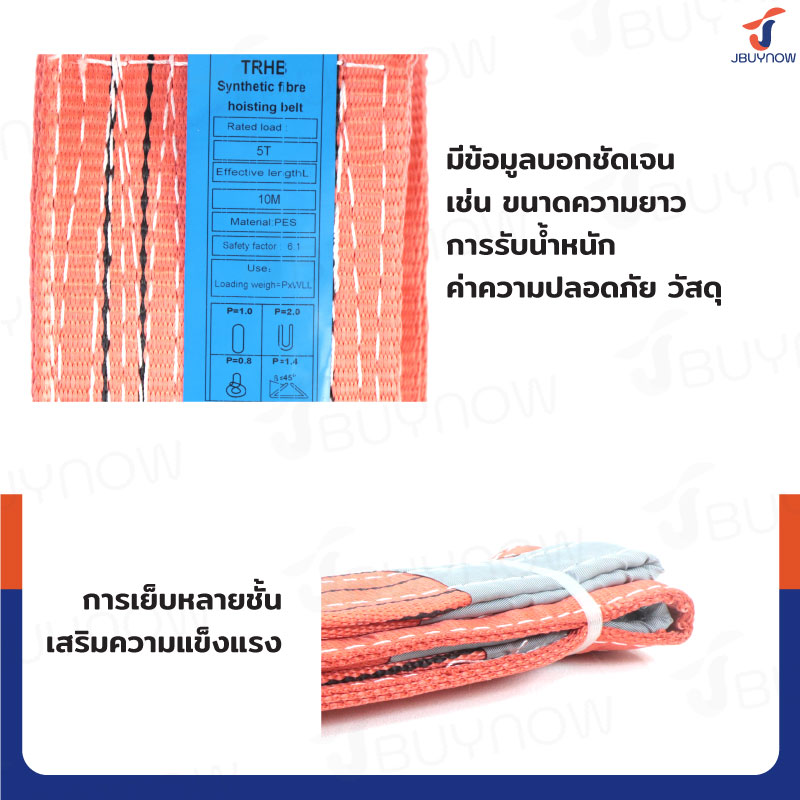 สลิงผ้าใบแบน สายพานยกของ (เซฟตี้ 6:1 มีใบเซอร์) 5 ตัน ยาว 10 เมตร JBUYNOW 5TX10M(A)