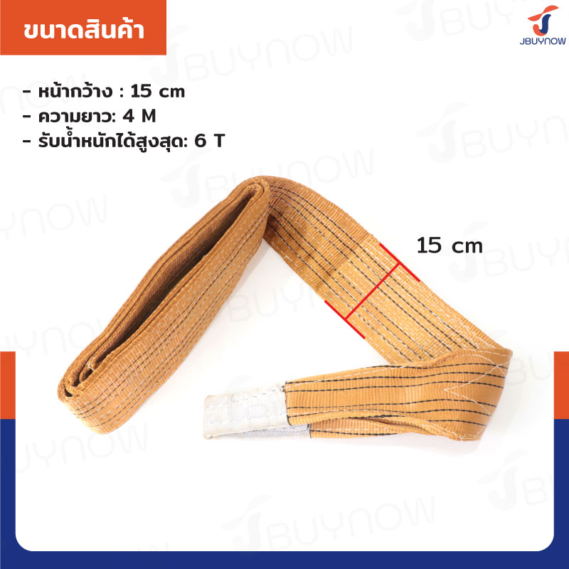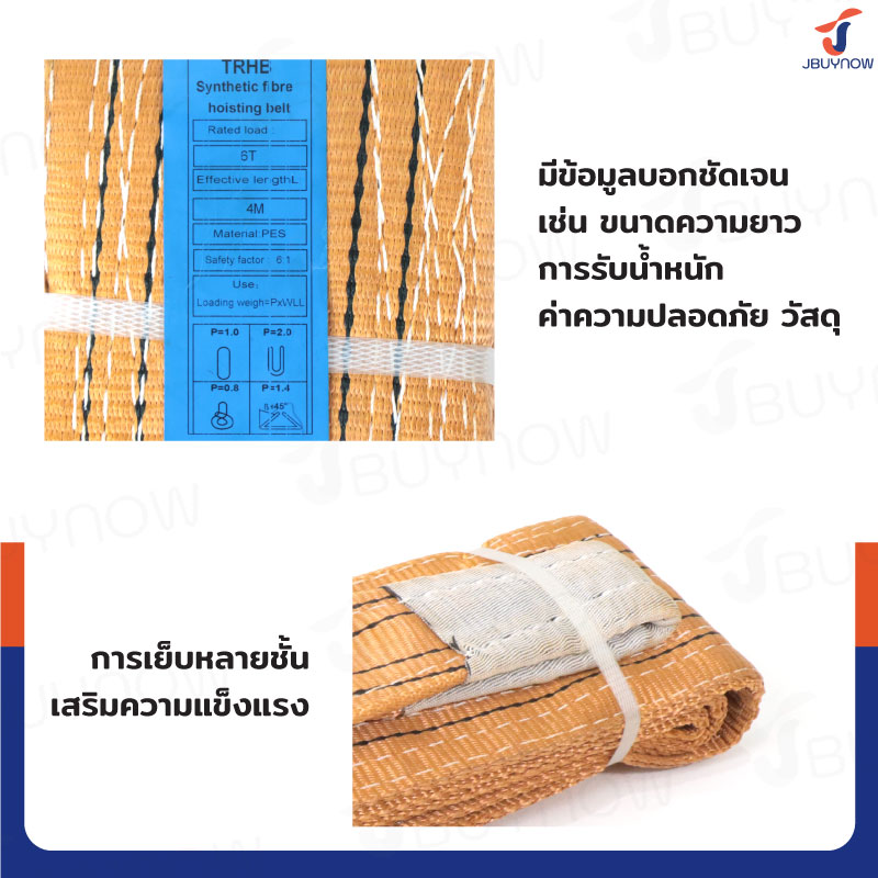Lifting straps สลิงผ้าใบแบน สายพานยกของ 6 ตัน ยาว 4 เมตร (เซฟตี้ 6:1) JBUYNOW 6TX4M(A)