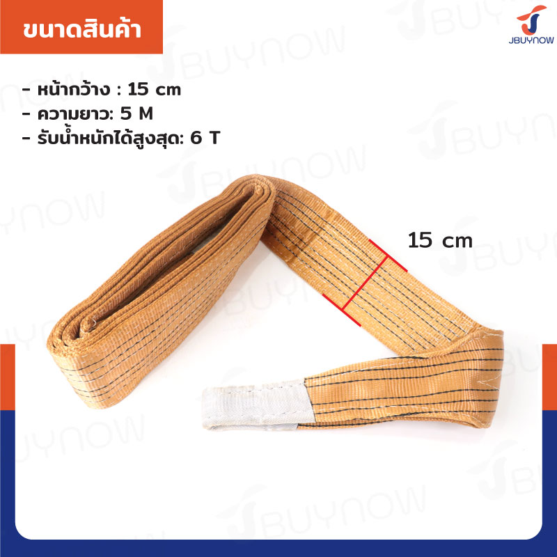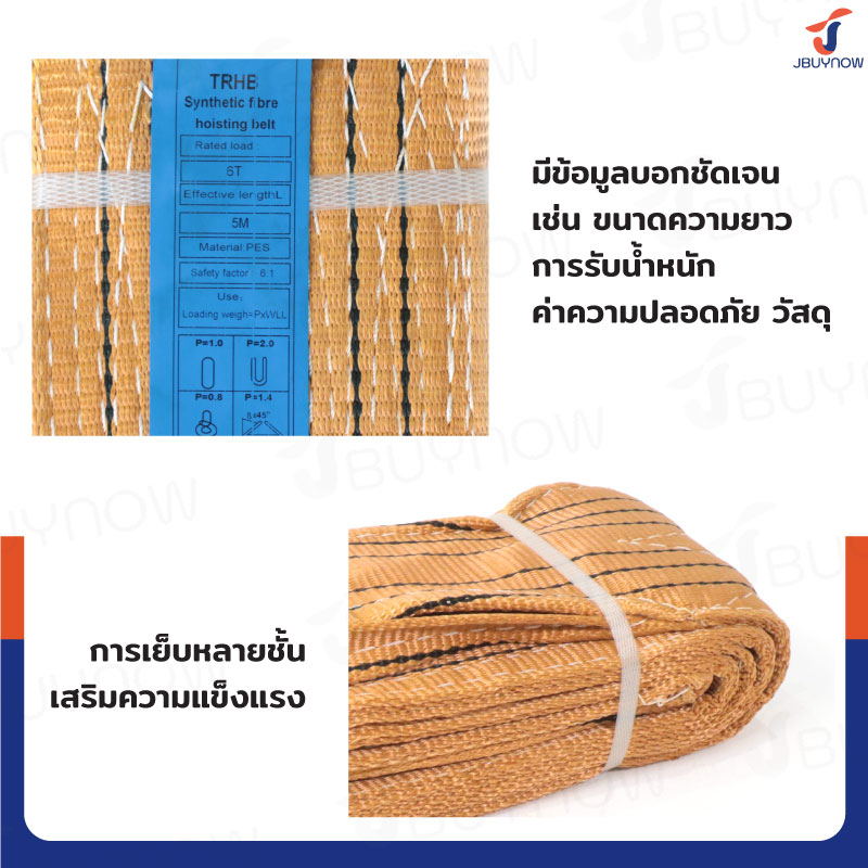 Lifting straps สลิงผ้าใบแบน สายพานยกของ 6 ตัน ยาว 5 เมตร (เซฟตี้ 6:1) JBUYNOW 6TX5M(A)
