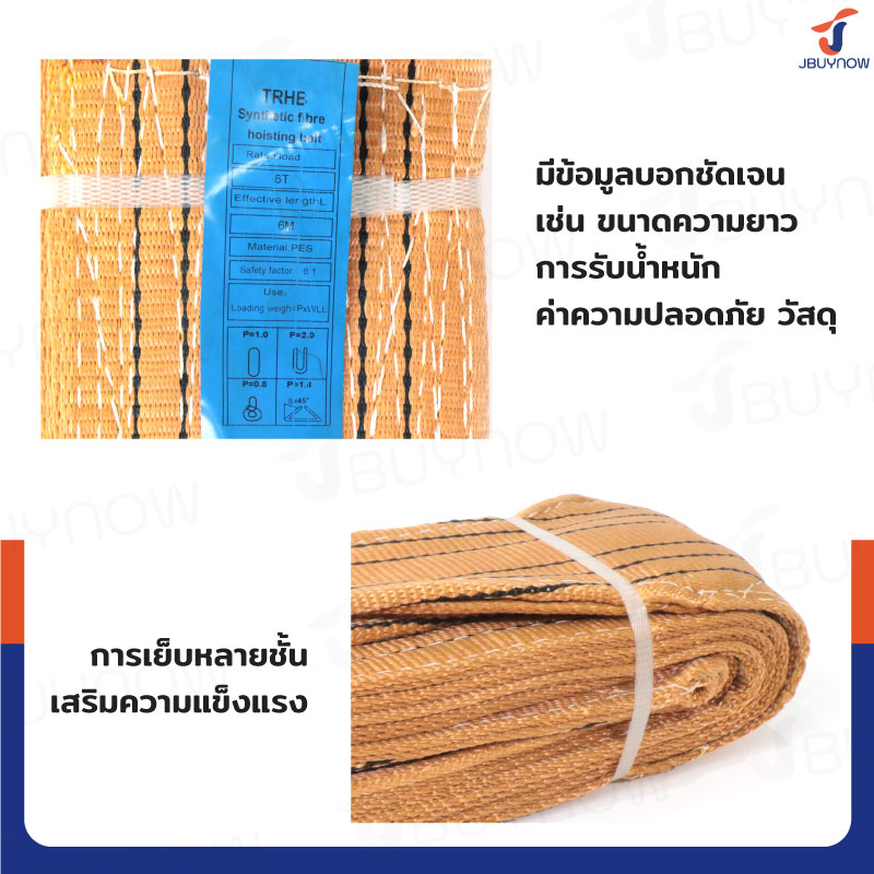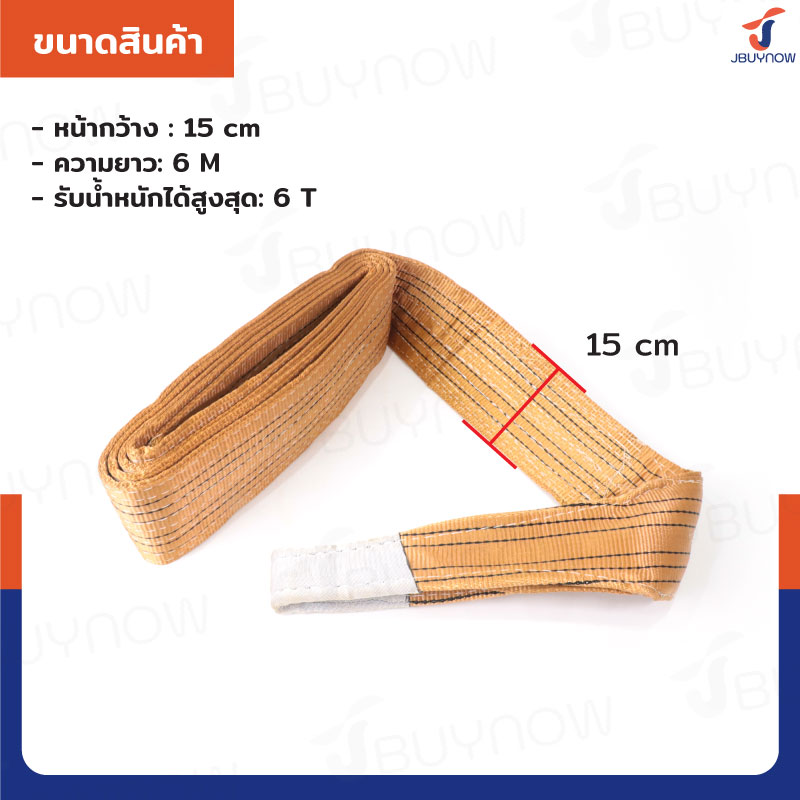 Lifting straps สลิงผ้าใบแบน สายพานยกของ 6 ตัน ยาว 6 เมตร (เซฟตี้ 6:1) JBUYNOW 6TX6M(A)