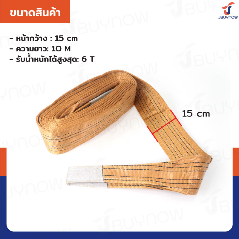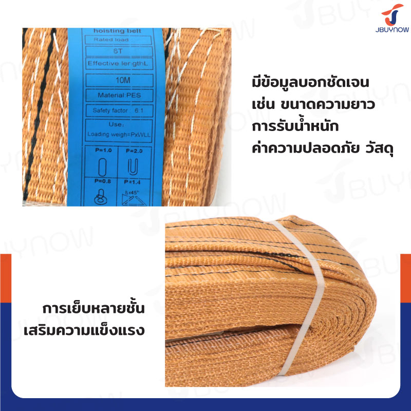 สลิงผ้าใบแบน สายพานยกของ (เซฟตี้ 6:1 มีใบเซอร์) 6 ตัน ยาว 10 เมตร JBUYNOW 6TX10M(A)