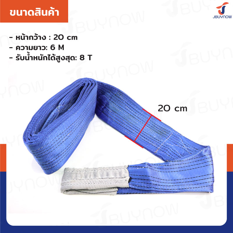 สลิงผ้าใบแบน สายพานยกของ (เซฟตี้ 6:1 มีใบเซอร์) 8 ตัน ยาว 6 เมตร JBUYNOW 8TX6M(A)