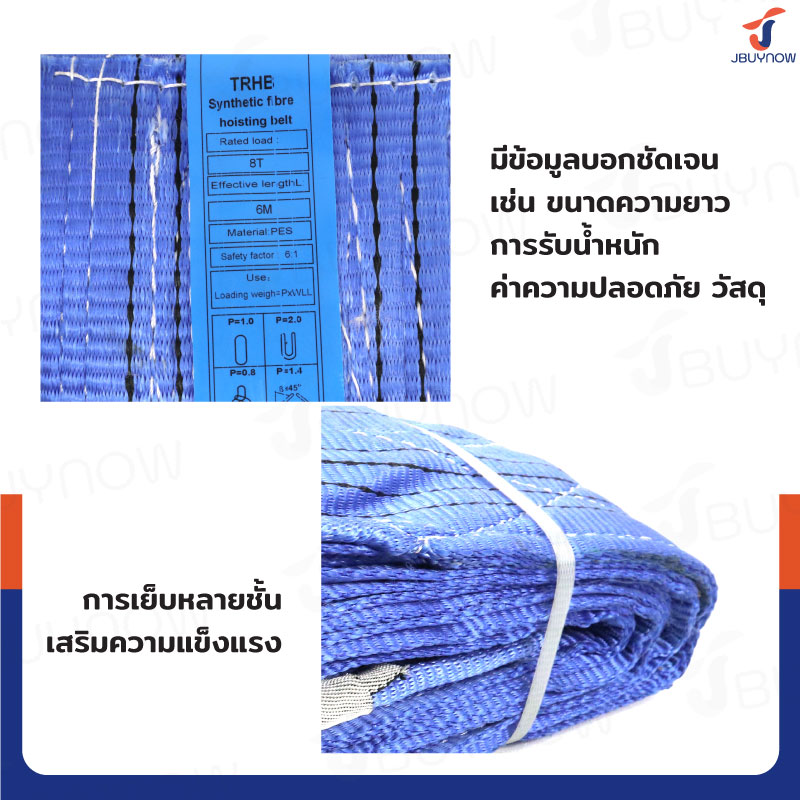 สลิงผ้าใบแบน สายพานยกของ (เซฟตี้ 6:1 มีใบเซอร์) 8 ตัน ยาว 5 เมตร JBUYNOW 8TX5M(A)