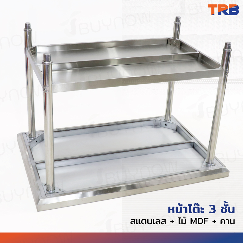 - หน้าโต๊ะหนา 3 ชั้น สแตนเลส + ไม้ MDF + คาน