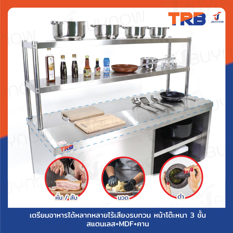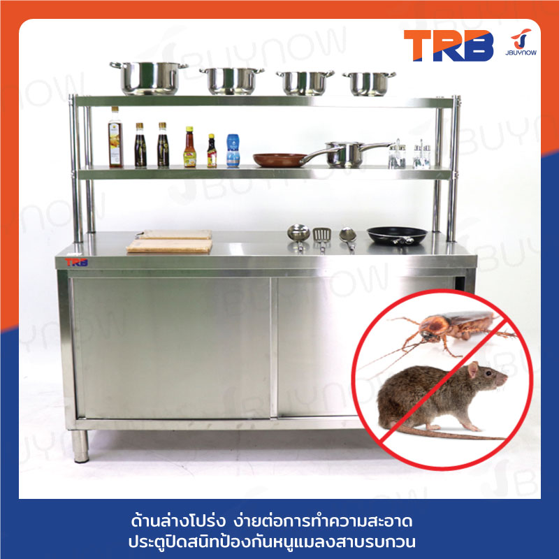 Stainless table โต๊ะครัวสแตนเลสแบบตู้ พร้อมชั้นวางของ 60x160x145cm RB230417-2