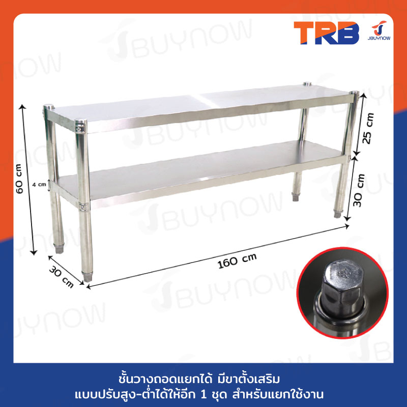 - ชั้นวางด้านบนถอดแยกได้ มีขาตั้งเสริมแบบปรับสูง-ต่ำได้ให้อีก 1 ชุด สำหรับแยกใช้งาน