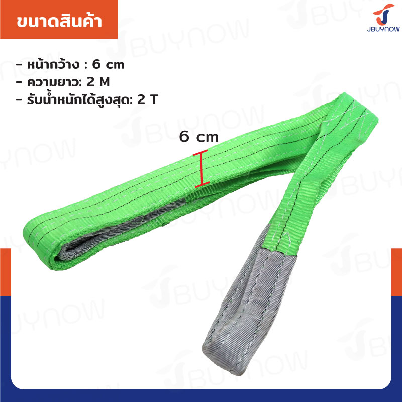 สลิงผ้าใบแบน สายพานยกของ 2 ตัน ยาว 2 เมตร (เซฟตี้ 7:1 มีใบเซอร์) JBUYNOW 2TX2M(A)