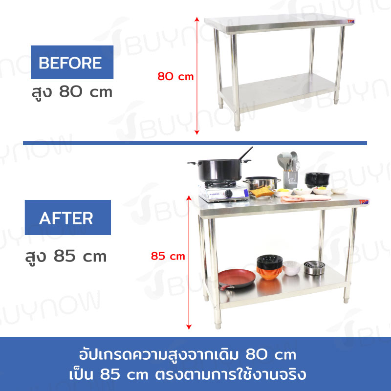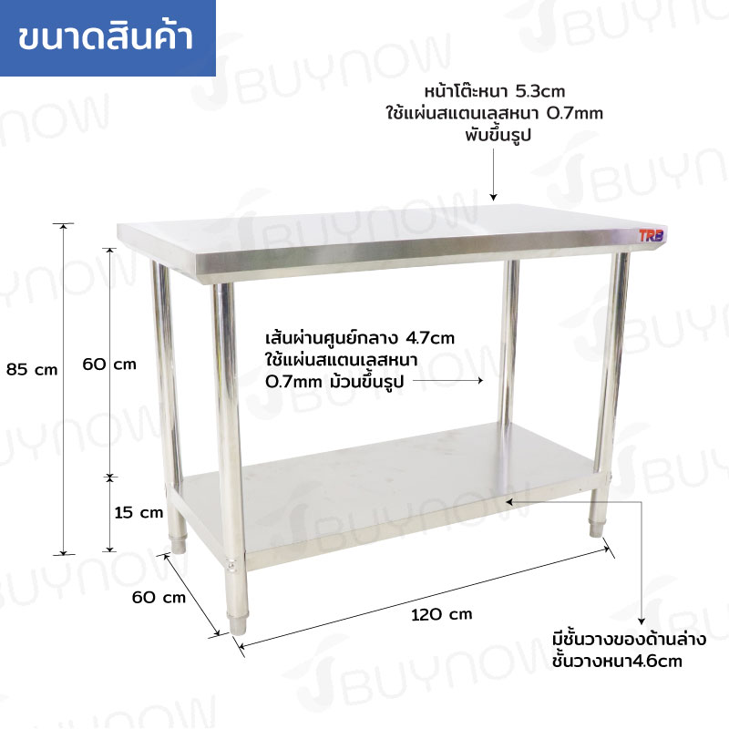 - หน้าโต๊ะหนา 5.3 cm ใช้แผ่นสแตนเลสหนา 0.7 mm