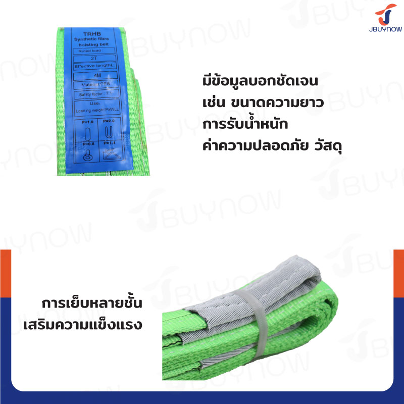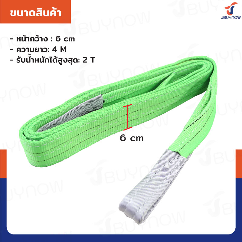 สลิงผ้าใบแบน สายพานยกของ 2 ตัน ยาว 4 เมตร (เซฟตี้ 7:1 มีใบเซอร์) JBUYNOW