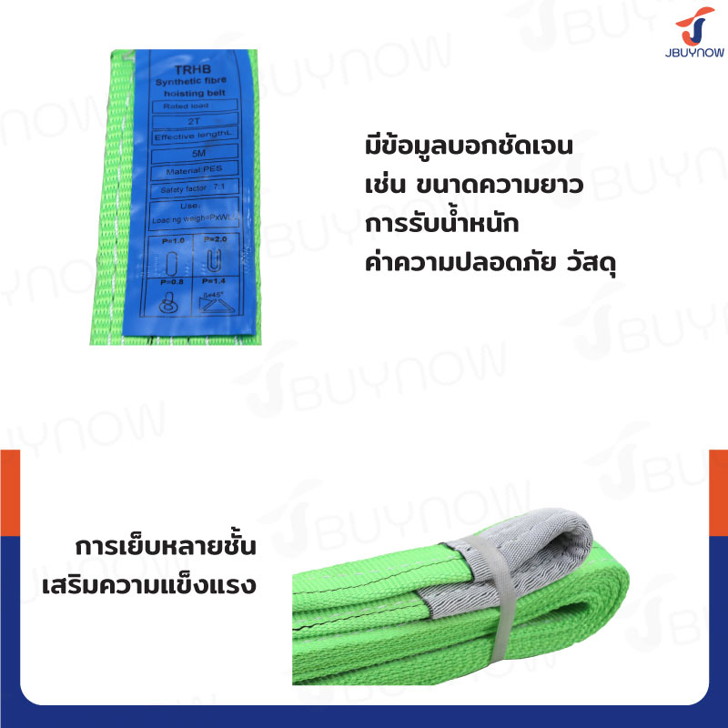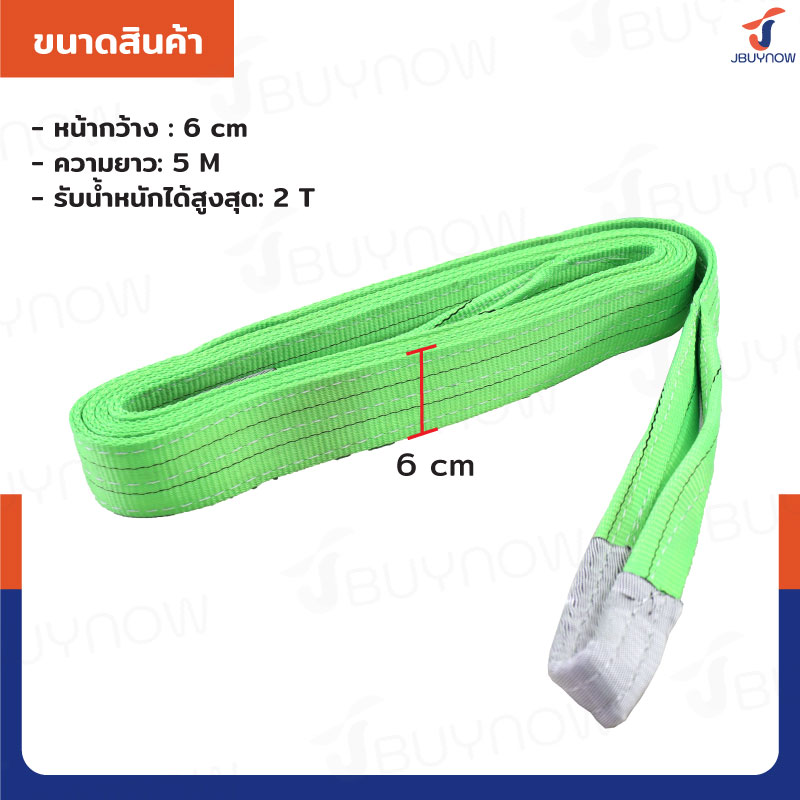 สลิงผ้าใบแบน สายพานยกของ 2 ตัน ยาว 5 เมตร (เซฟตี้ 7:1 มีใบเซอร์) JBUYNOW 2TX5M