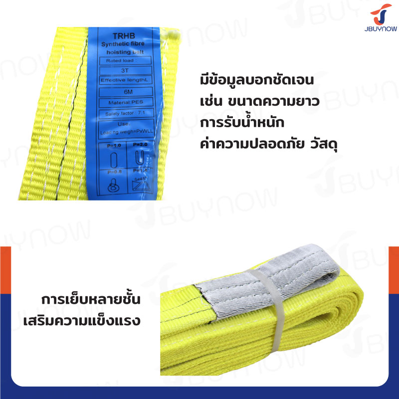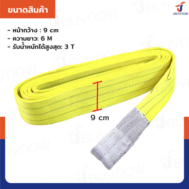 สลิงผ้าใบแบน สายพานยกของ 3 ตัน ยาว 6 เมตร (เซฟตี้ 7:1 มีใบเซอร์) JBUYNOW