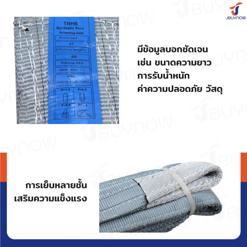 สลิงผ้าใบแบน สายพานยกของ 4 ตัน ยาว 3 เมตร (เซฟตี้ 7:1 มีใบเซอร์) JBUYNOW 4TX3M(A)