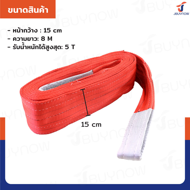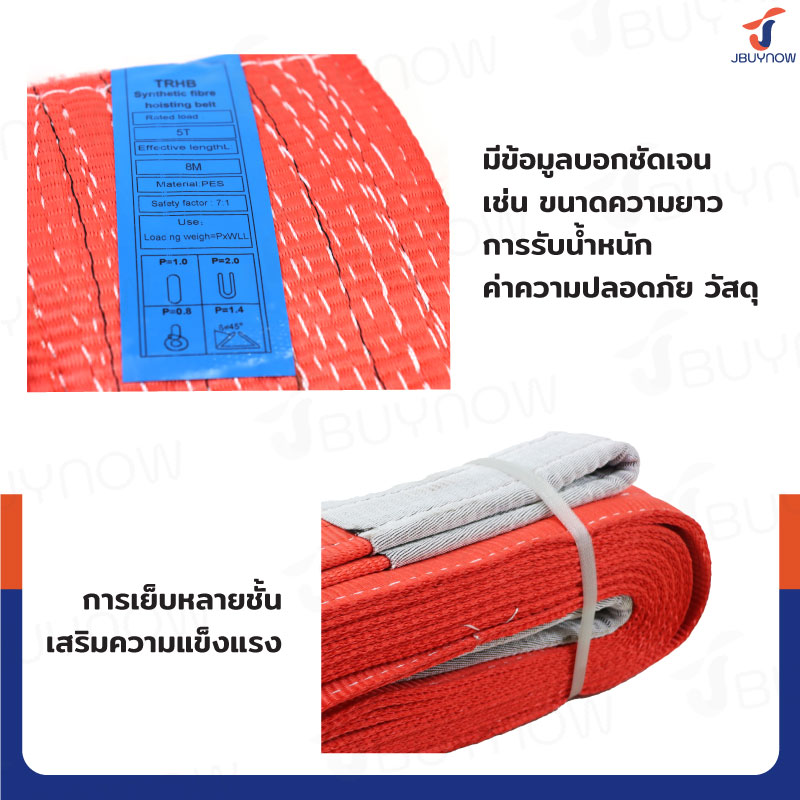 สลิงผ้าใบแบน สายพานยกของ 5 ตัน ยาว 8 เมตร (เซฟตี้ 7:1 มีใบเซอร์) JBUYNOW