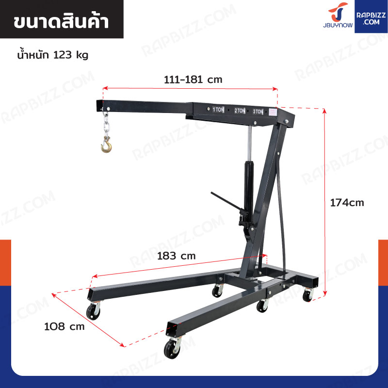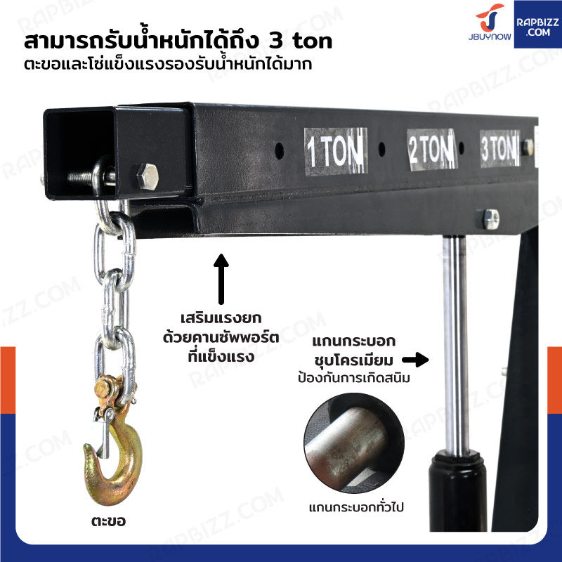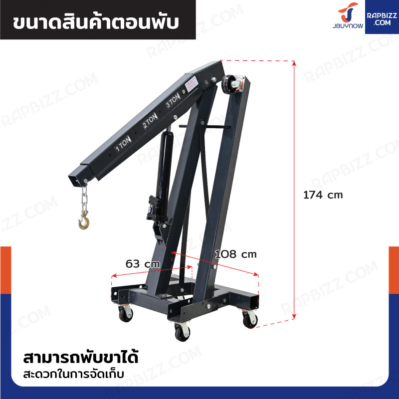 เครนไฮดรอลิก เครนยกของ 3 ตัน ปั๊มเดี่ยว (พับเก็บได้) JBUYNOW RB240115-13A