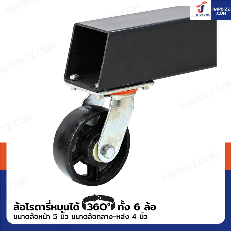 - ล้อหลังโรตารี่หมุนได้ 360° ทั้ง 6 ล้อ สะดวกในการปรับมุมรถตามความต้องการ