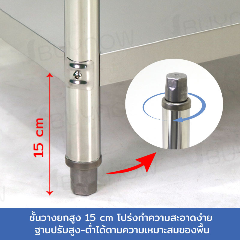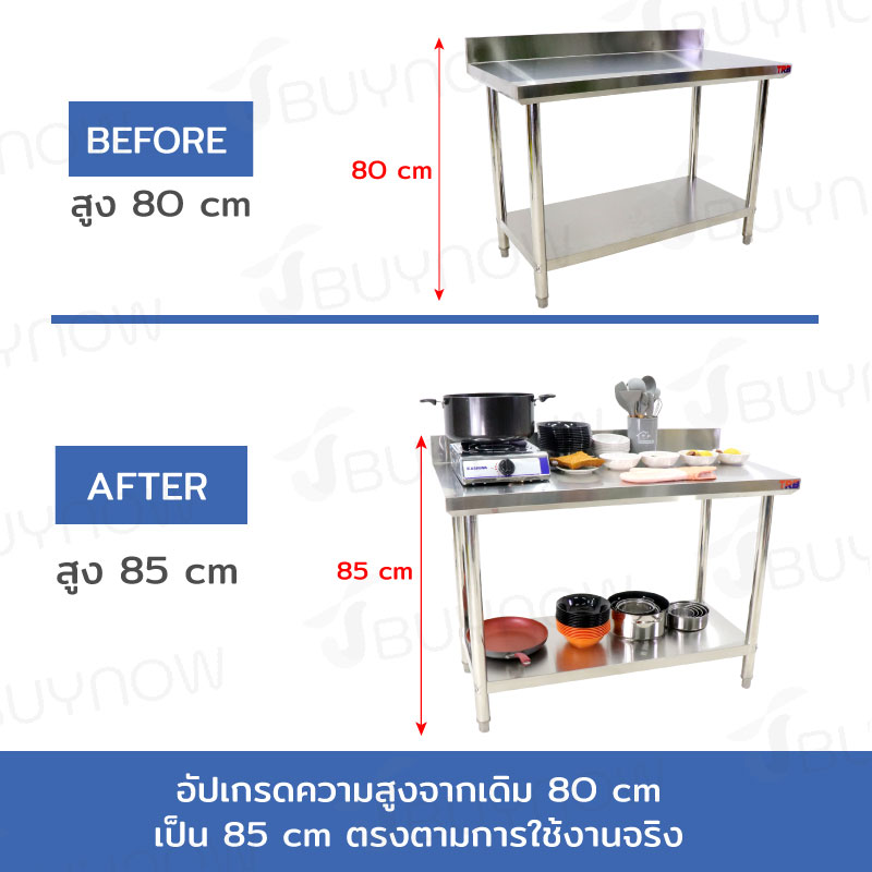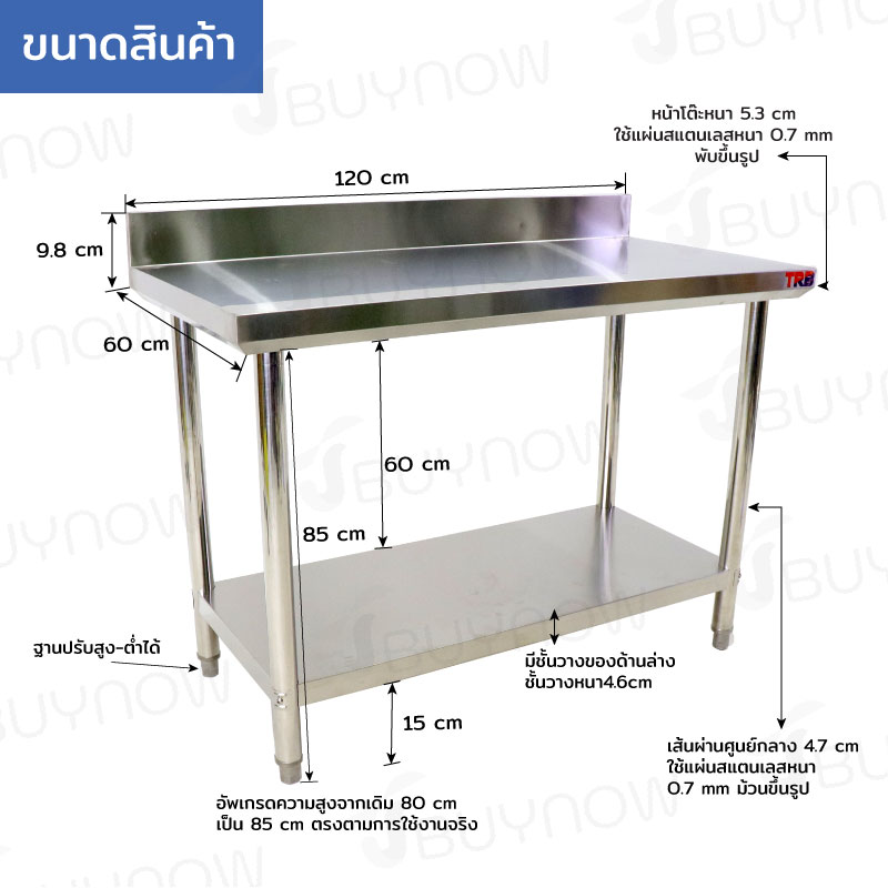 - หน้าโต๊ะหนา 5.3 cm ใช้แผ่นสแตนเลสหนา 0.7 mm
