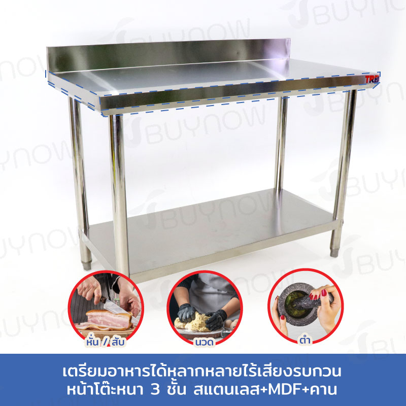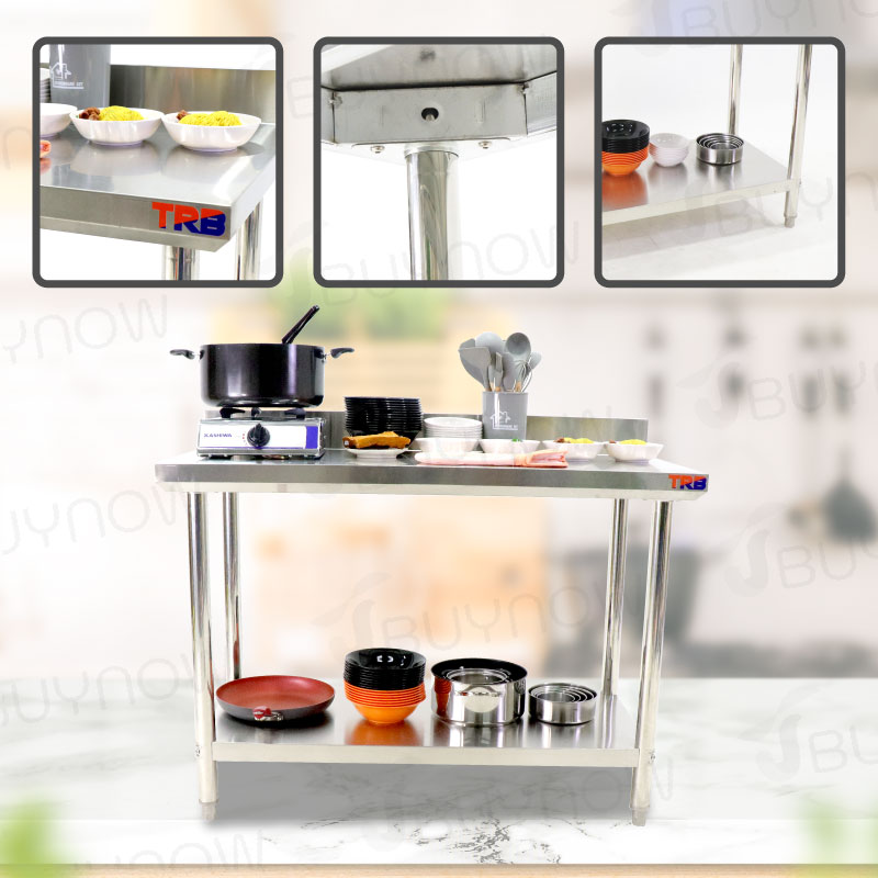 Stainless Steel Table โต๊ะครัวสแตนเลส มีการ์ดกั้น 60x120x85cm RB230417-7(W60)