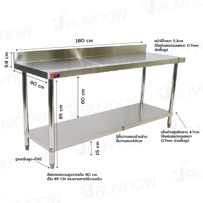 Stainless Steel Table โต๊ะครัวสแตนเลส มีการ์ดกั้น 60x180x85cm RB230417-9