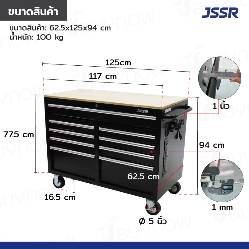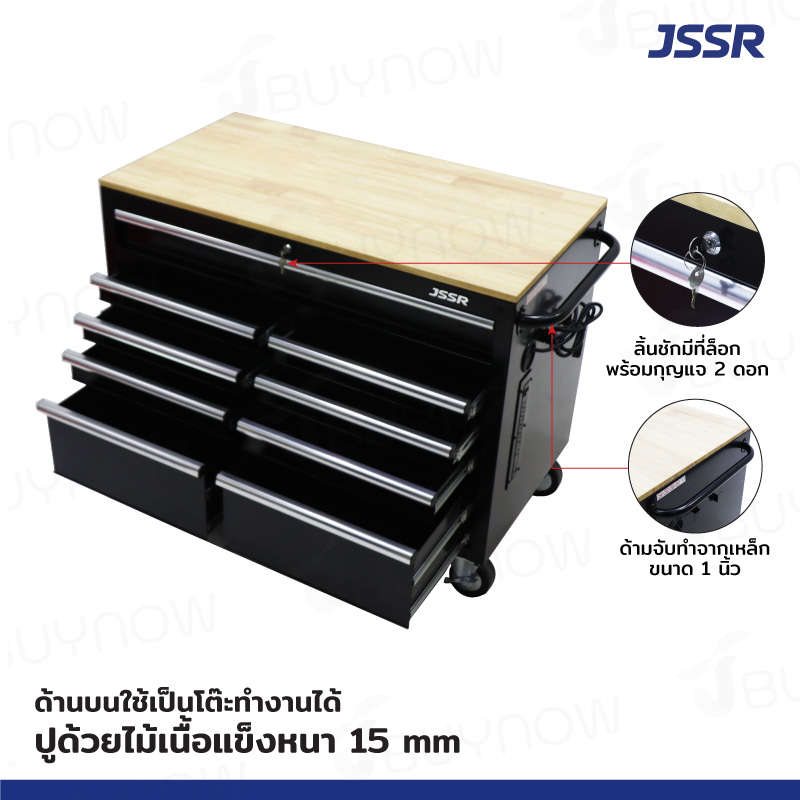 - มีล้อเลื่อน ลิ้นชัก กุญแจล็อค และด้ามจับ พร้อมกับฟังก์ชันการใช้งานหลากหลายครบครัน ที่จะช่วยจัดการเก็บเครื่องมือช่างได้อย่างเต็มประสิทธิภาพ
