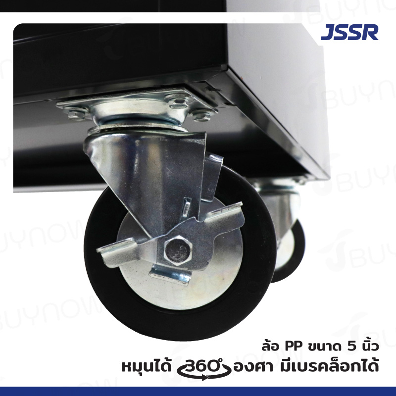 - ล้อ PP 5 นิ้ว หมุนได้ 360 องศา 2 ล้อ มีเบรค (ล็อคได้) เป็นล้อตาย 2 ล้อ