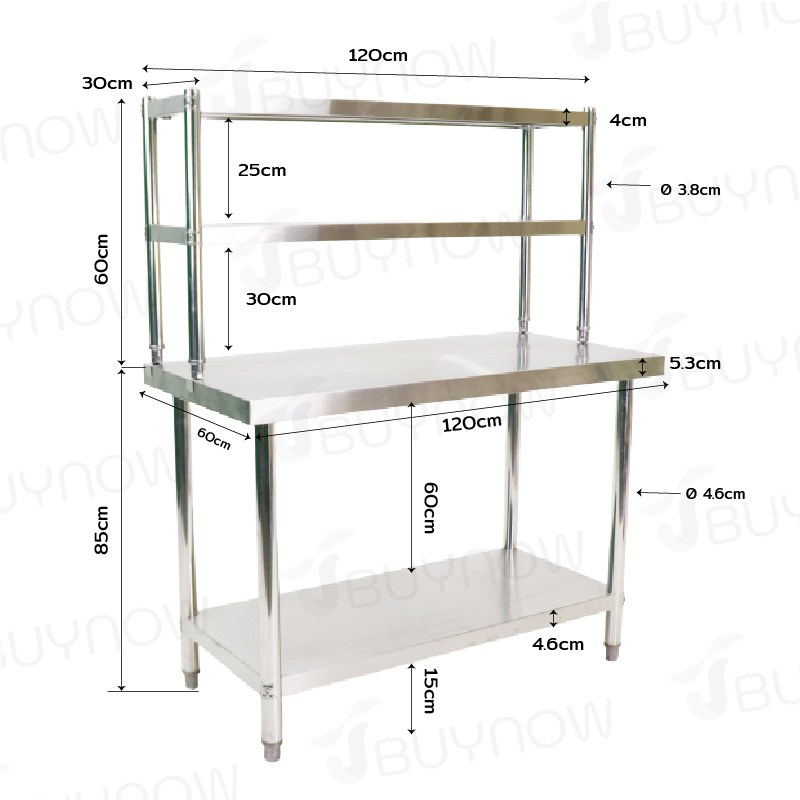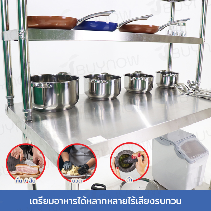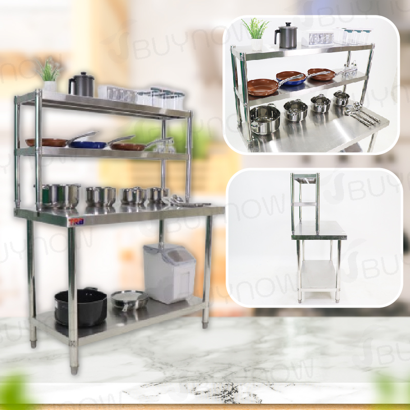 Stainless Steel Table โต๊ะครัวสแตนเลส พร้อมชั้นวาง 60x120x145cm RB230417-10