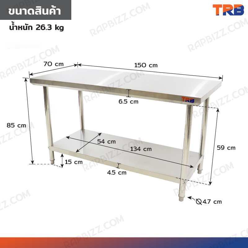 Stainless Steel Table โต๊ะครัวสแตนเลส 70x150x85cm RB230417-5(W70)