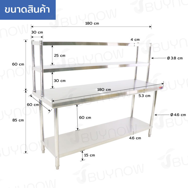 Stainless Steel Table โต๊ะครัวสแตนเลส พร้อมชั้นวาง 60x180x145cm RB230417-12(W60)