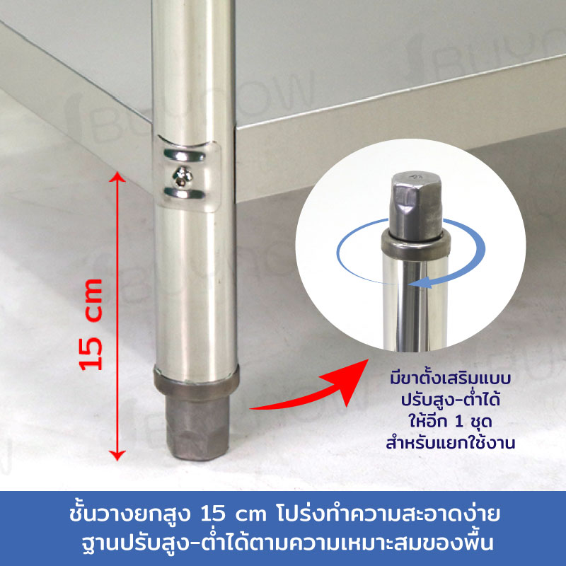 - ชั้นวางถอดแยกได้ มีขาตั้งเสริมแบบปรับสูง-ต่ำได้ให้อีก 1 ชุด สำหรับแยกใช้งาน