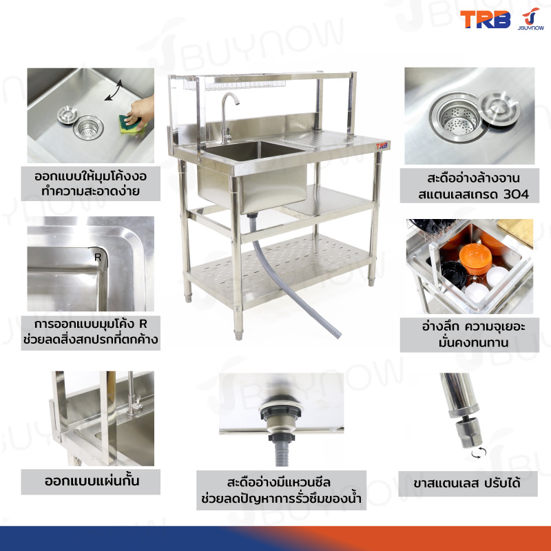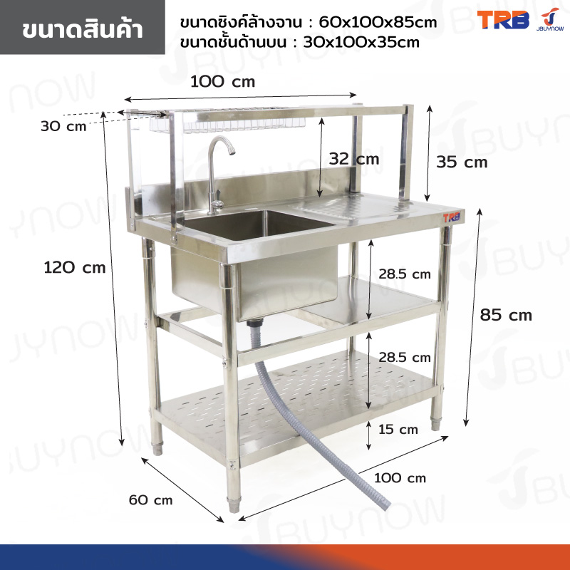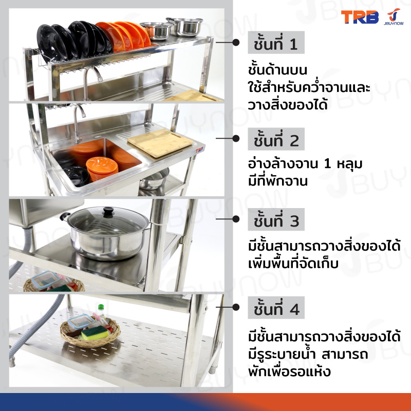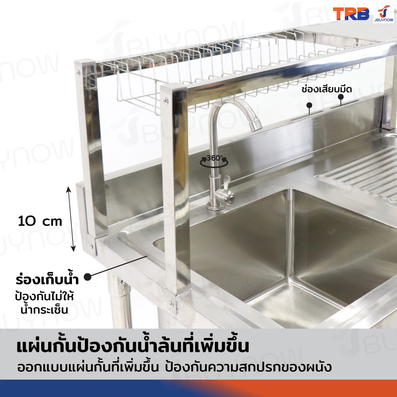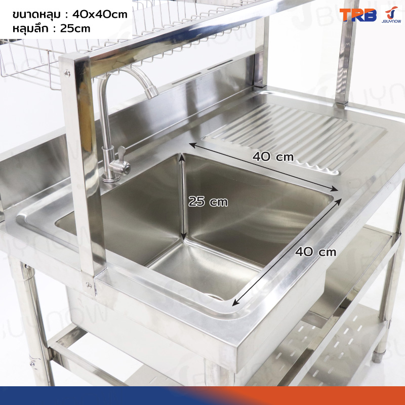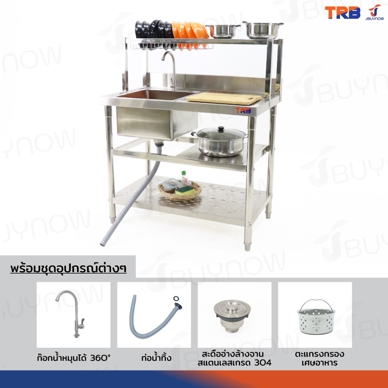 ซิงค์ล้างจาน 1 หลุม มีที่พักจาน 1ที่คว่ำจาน+2ช้ันวางใต้ซิงค์ สแตนเลสเกรด 201 60x100x120cm JBUYNOW TRB RB230531-2-1L