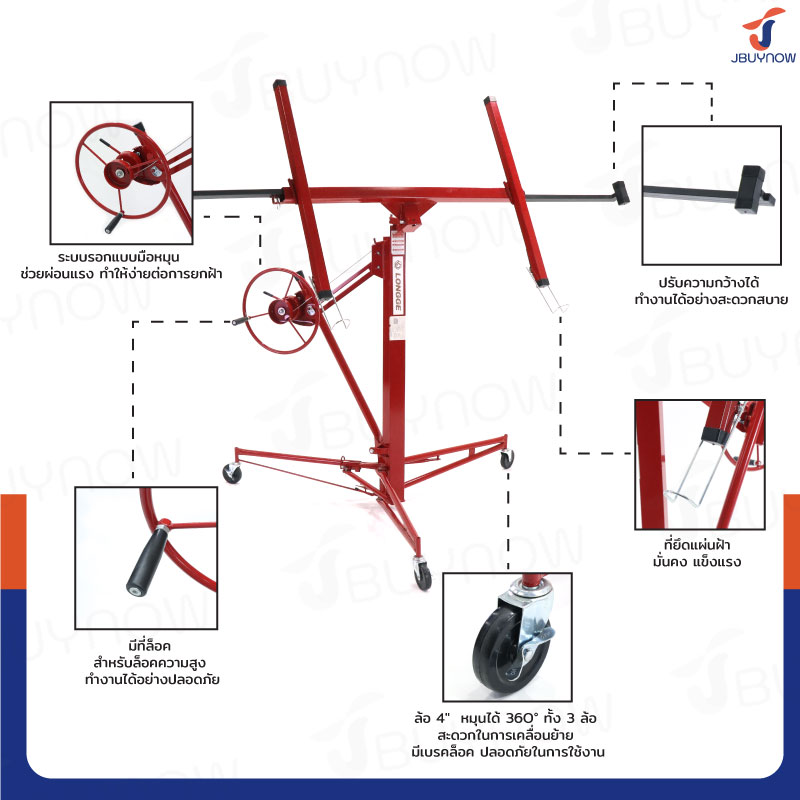 ME0302-00001 เครื่องยกแผ่นฝ้า ยิปซัมบอร์ด ความสูง 3.35 เมตร (11 ฟุต) JBUYNOW RB240115-1(11Ft)