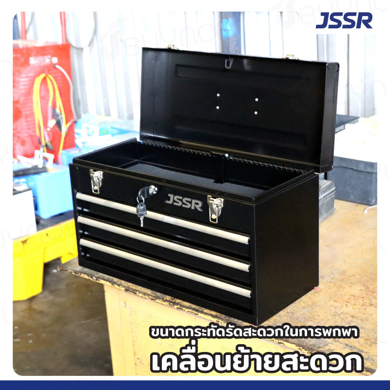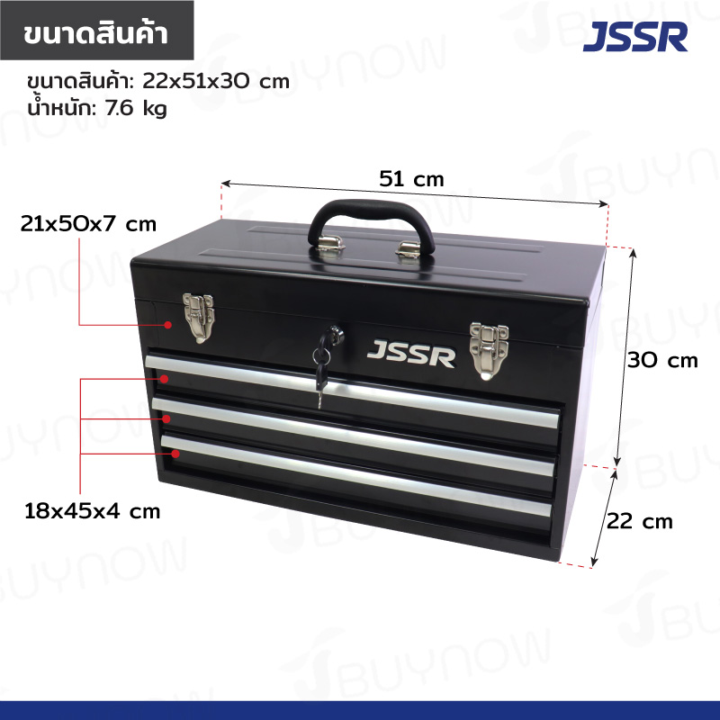 กล่องเครื่องมือ 20 นิ้ว รุ่น 3 ลิ้นชัก เปิดบนได้ 22x51x30 ซม.สีดำ JBUYNOW ZR-TB001-BL