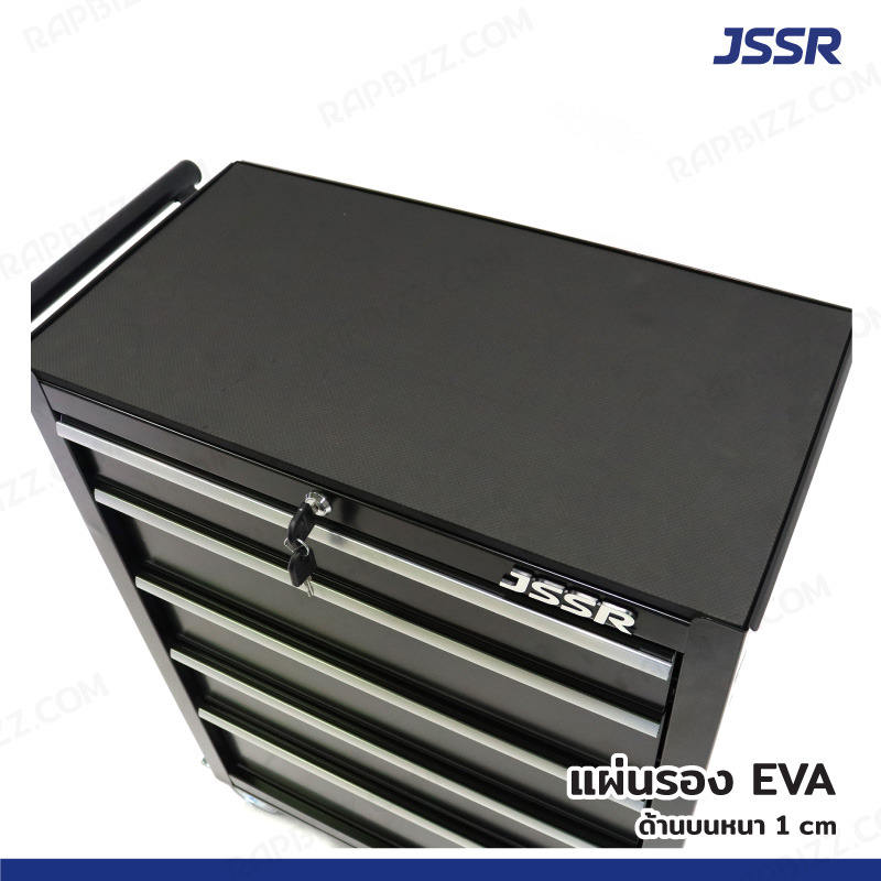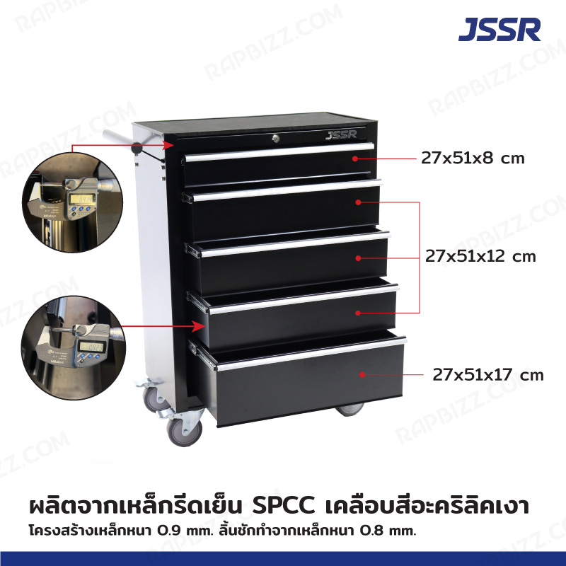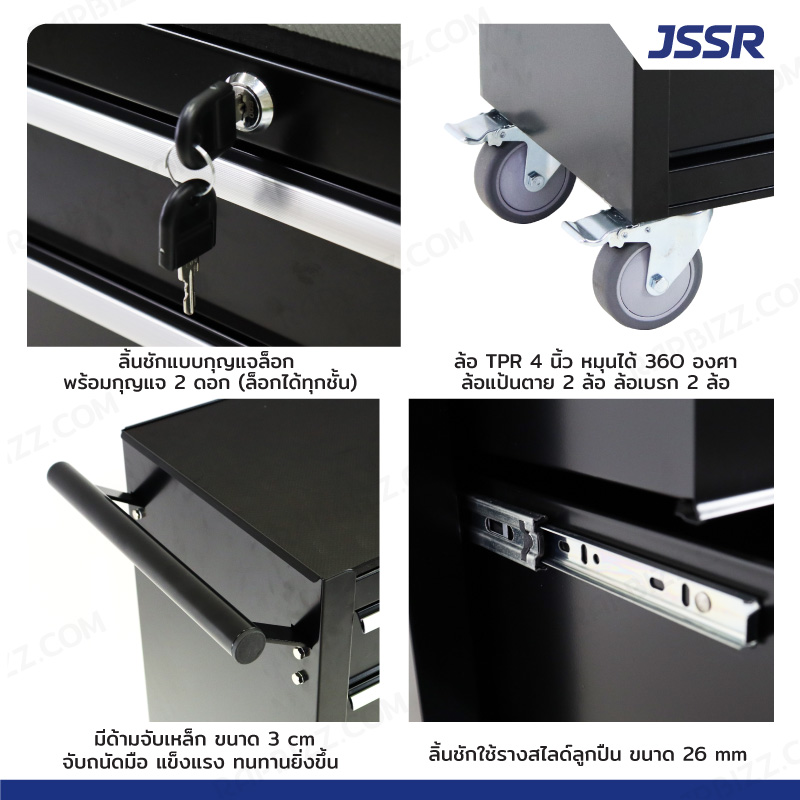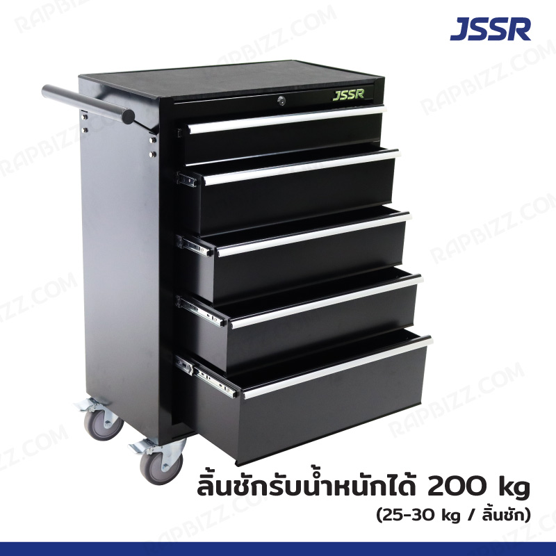 ตู้เครื่องมือ 5 ลิ้นชัก มีกุญแจล็อค 34x71x89 ซม. สีดำ รุ่นล้อใหญ่ 4 นิ้ว(เสียงเงียบ) JBUYNOW JSSR