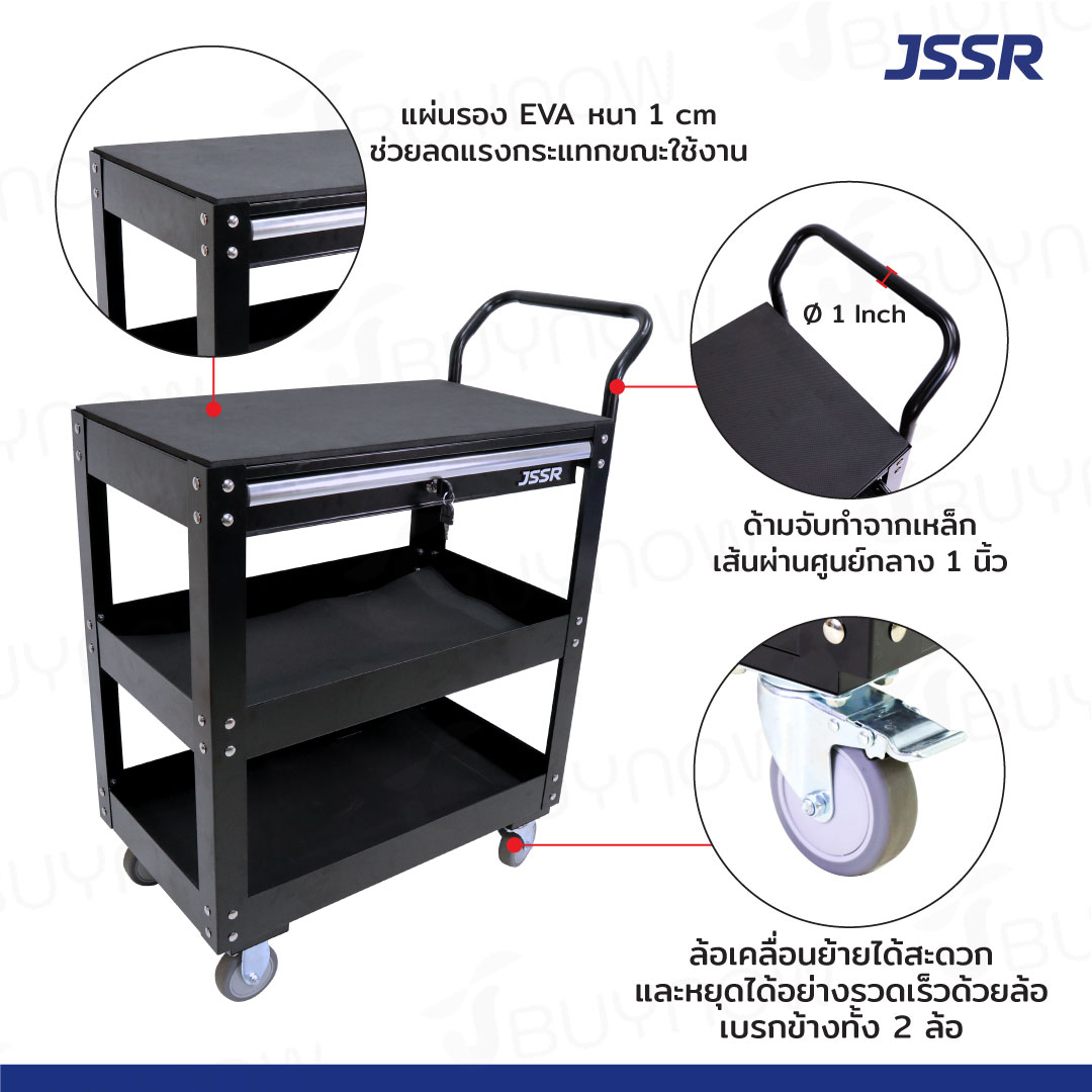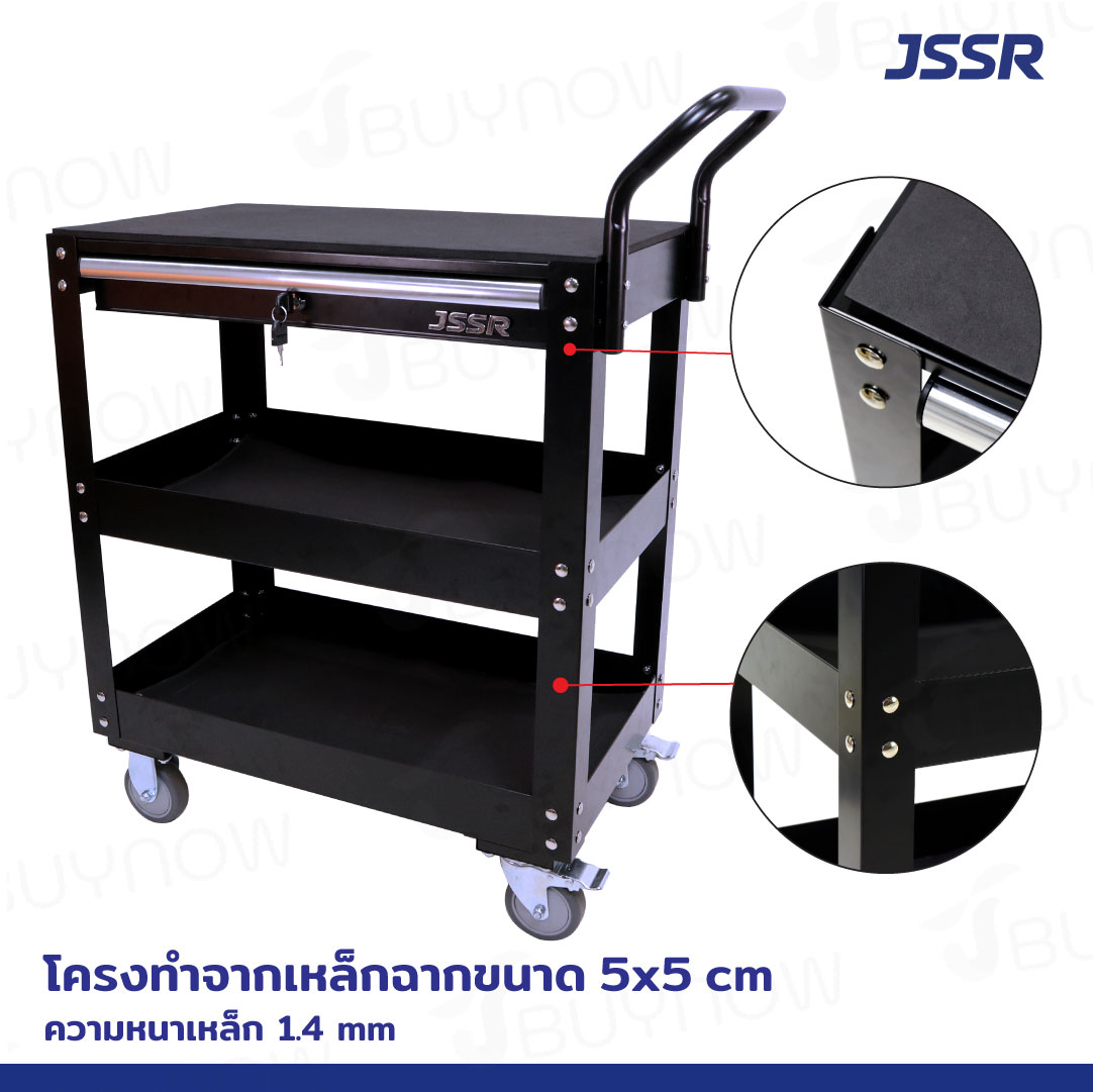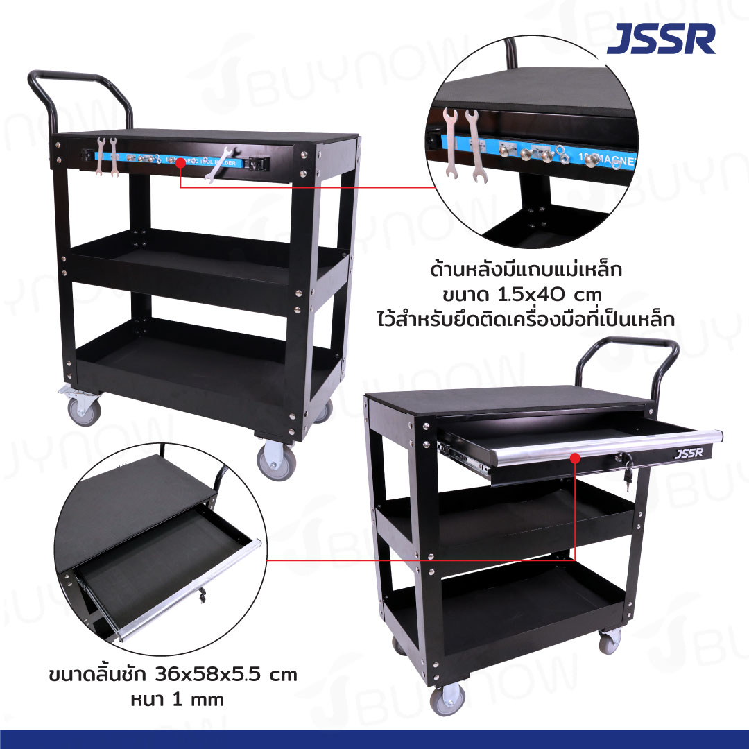 รถเข็นเครื่องมือ 3 ชั้น แบบมีกุญแจล็อค/แทบแม่เหล็ก 41x83x102 cm สีดำ PMT-114